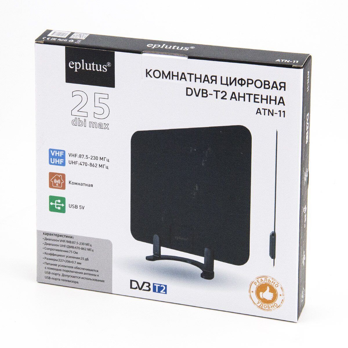 Комнатная телевизионная антенна активного типа Eplutus ATN-11 предназначена, прежде всего, для эффективного приема телесигналов российского телевизионного стандарта DVB-T2 и дальнейшего высококачественного воспроизведения их на экранах современных телевизоров. Устройство также действенно работает на прием удаленных сигналов FM радио.