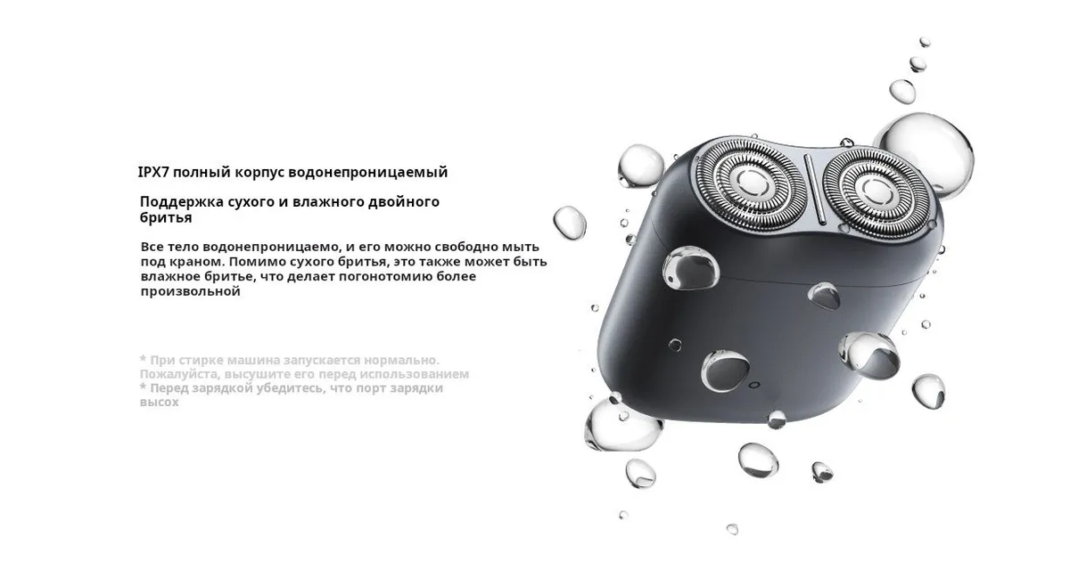 Электробритва Xiaomi Mijia Electric Shaver S200 подходит для сухого и влажного бритья, позволяя вам выбрать наиболее комфортный способ. Защищенный корпус по стандарту IPX7 позволяет мыть устройство под проточной водой, делая уход за ним простым и гигиеничным.