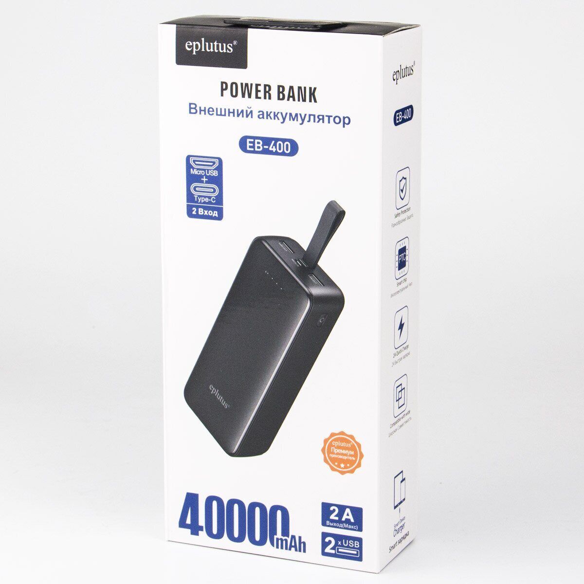 Портативный аккумулятор Power bank Eplutus ЕB-400 Micro USB кабель Инструкция пользователя Фирменная упаковка