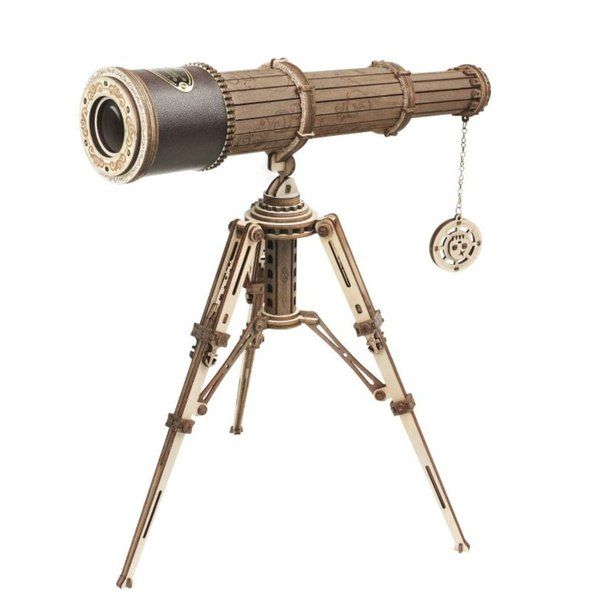 Монокулярный телескоп Robotime представляет собой деревянную 3D-головоломку модели телескопа в классическом стиле. Эта головоломка разработана с декоративной табличкой из кожи и металла в стиле ретро, ??регулируемым штативом и корпусом телескопа. Реальное расстояние видимости составляет 150 м. Его сборка своими руками станет настоящим испытанием для мореплавателей и любителей приключений.