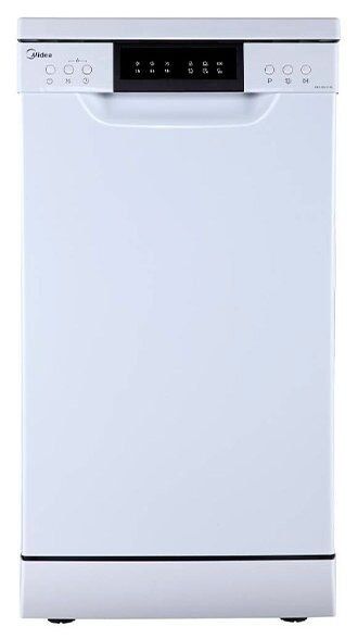 Midea MFD45S100W оборудован дисплеем, на котором отображается состояние прибора. Если при загрузке машины вам нужно отлучиться, на спасение придет таймер отсрочки запуска, что позволит работать устройству только под вашим надзором. Для управления посудомоечной машиной используются кнопки, а на дисплее для удобства предусмотрены различные индикаторы: индикаторы наличия ополаскивателя, соли, блокировки, установленного времени. Устройство подразумевает четыре программы мойки.