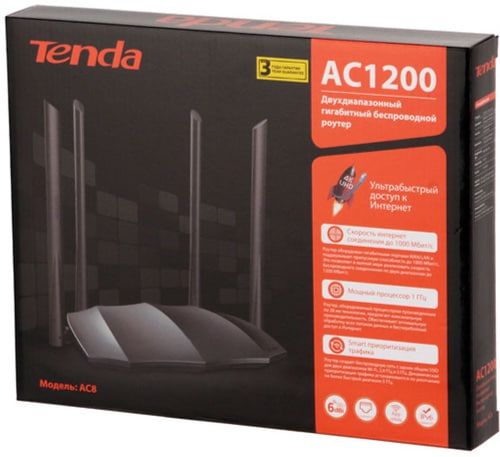 Тип устройстваМаршрутизатор (router)ПроизводительTendaКоличество портов4Базовая скорость передачи данных10/100/1000 Мбит/секСкорость Wi-Fi, Мбит/с1201IEEE 802.11n/b/g 2,4 ГГцестьIEEE 802.11ac/n/a 5 ГГцесть -