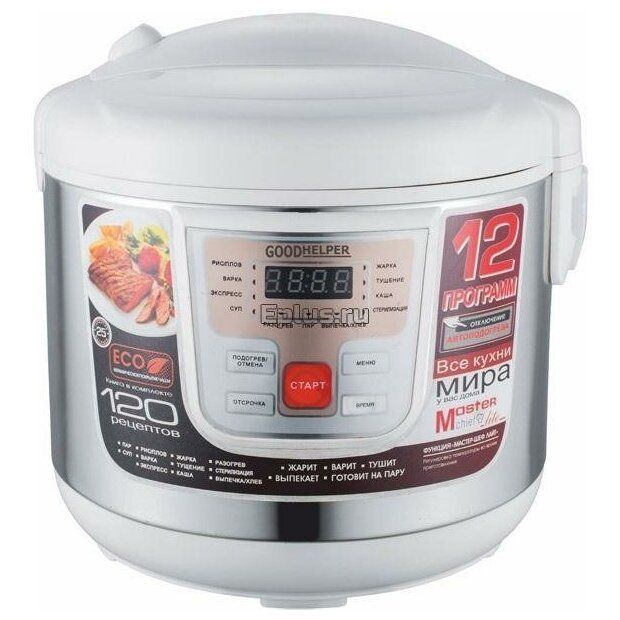 Мультиварка МС-5111 отлично справляется со своей задачей. Она станет хорошим помощником для вас и здорово сократит время, которое вы ранее посвящали готовке. Прибор работает в 10 режимах приготовления, в том числе в режиме стерилизации, паровой обработки и выпечки. Чаша объемом 5 литров имеет специальную разметку, чтобы ингредиенты, которые увеличиваются в объеме во время готовки, например, крупы или бобовые, оставались внутри.Функция Отсрочка позволяет отложить приготовление пищи на нужный вам срок. Например, сделать кашу к утру или котлеты на пару к моменту, когда ребенок вернется из школы.Режим Подогрев длительное время сохранит вашу еду горячей.К модели мультиварки МС-5111 прилагается книга рецептов, где можно найти блюда из мяса, рыбы, овощей и круп.С Goodhelper готовить одно удовольствие!
