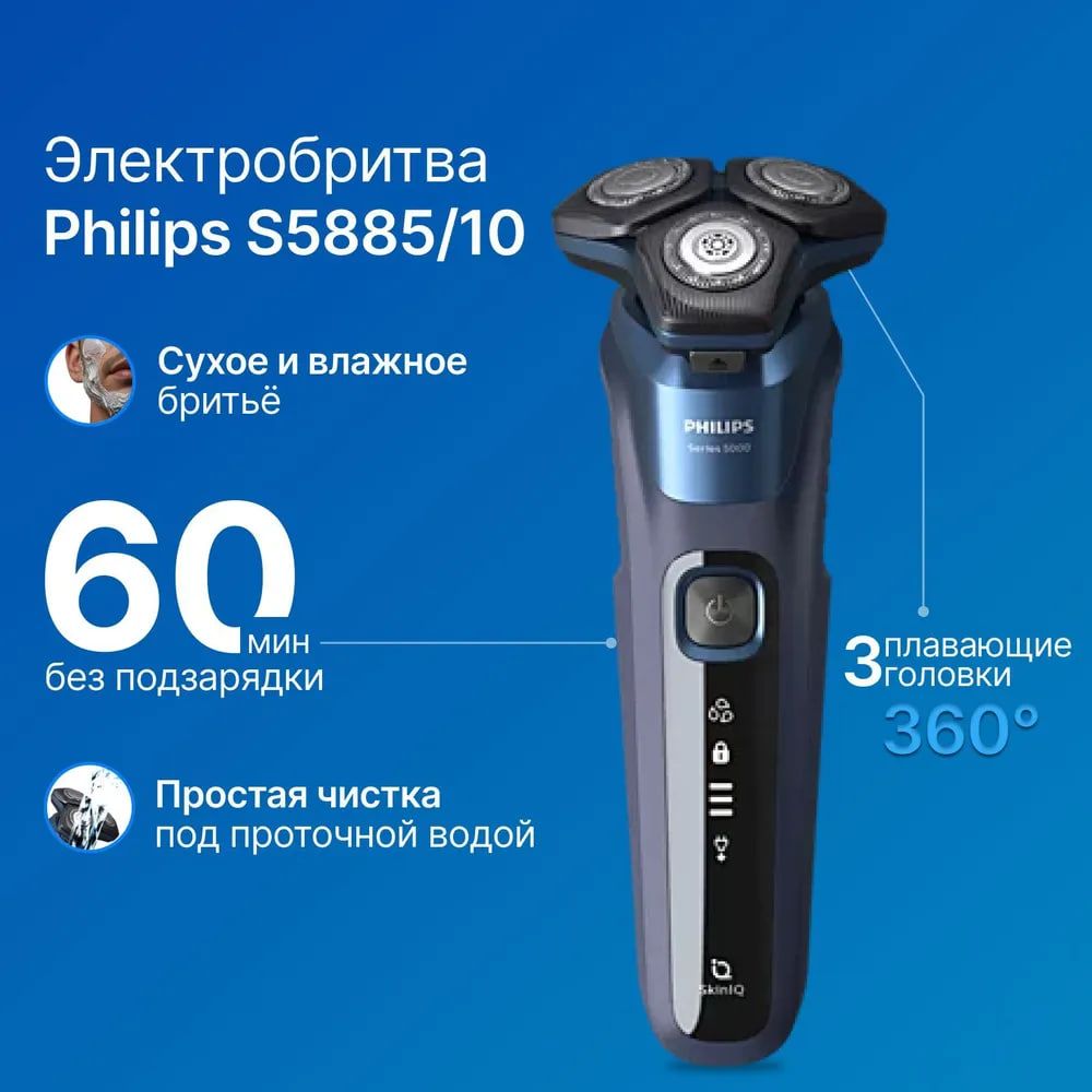 Без запутывающегося кабеляЕсли вы часто бреетесь или уделяете этому много времени, вас порадует, что модель Philips Shaver Series 5000 S5885/10 обеспечивает до 60 минут беспроводного бритья после полной зарядки аккумулятора. Это решение значительно упростит вашу повседневную заботу о себе!