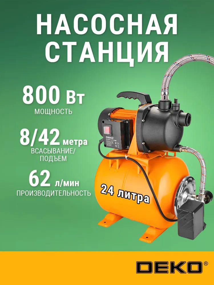 Насосная станция DKJP800 предназначена для перекачки чистой пресной воды при температуре от +1 °C до +40 °C и максимальном содержании растворенного газа 12%. Насос не должен использоваться для перекачки легковоспламеняющихся веществ из-за опасности возгорания. Используется для подачи воды в систему водоснабжения дач, коттеджей, ферм. Предусмотрен встроенный датчик давления для автоматического включения насоса при падении давления. Станция отличается вместительным резервуаром на 24 литра, что уменьшает нагрузку на двигатель и сглаживает гидроудары.