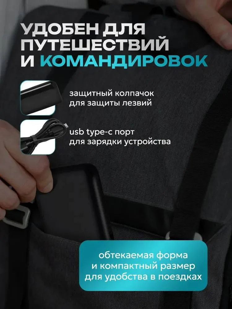 Удобный и компактныйТакой шейвер легко брать с собой в поездку, ведь он компактный и прекрасно поместится в любую сумку. Дорожная бритва – лучшее решение для современного мужчины знающего толк в идеальном внешнем виде.