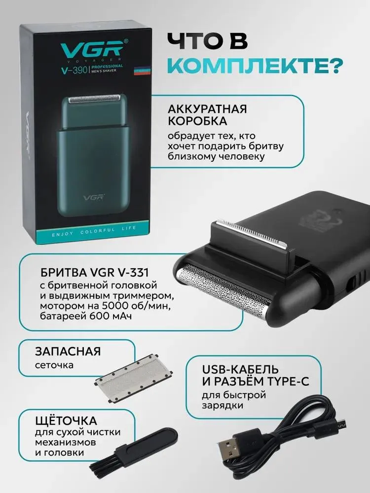 КомплектацияЭлектробритва - шейвер V-390