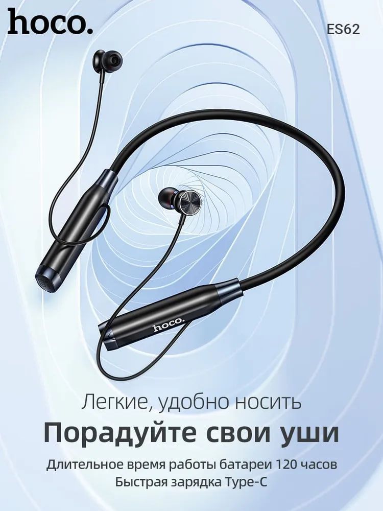 Беспроводные наушники с микрофоном Hoco ES62 – это внутриканальные беспроводные наушники, которые подойдут для занятия спортом, фитнеса, прогулок по городу и путешествий. Эта спортивная модель с гибким и приятным на ощупь шейным ободком, воспроизводит музыку с устройств, подключенных по Bluetooth, или с карты памяти формата micro SD. Благодаря аккумулятору увеличенной емкости, время воспроизведения музыки составляет 120 часов без подзарядки. Версия Bluetooth 5.3 обеспечит бесперебойной работой и высокой скоростью передачи аудио файлов. Выполнены они в лаконичном и универсальном дизайне. Встроенный микрофон освободит ваши руки во время разговора по телефону. Когда наушники не используются вкладыши можно соединить между собой благодаря встроенным магнитами.