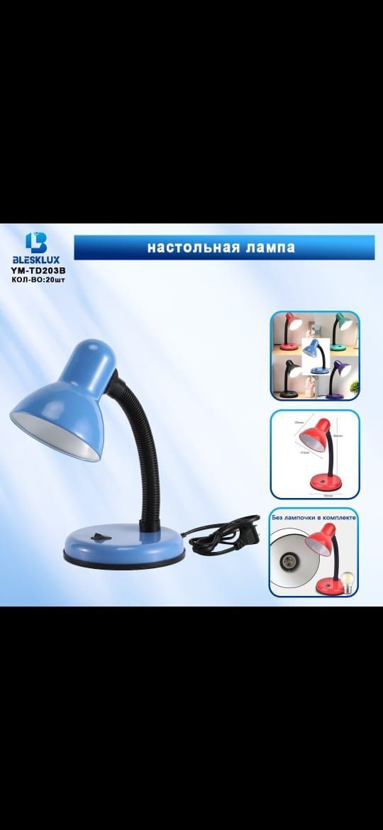 Уютель UT-203В настольная лампа Е27 60W, красная, на подставке, шнур 0,9м (50шт.в упаковке) Материал ? пластик, металл.Настольный светильник под лампу с цоколем Е27 с плафоном классической формы на круглой подставке. Оснащен полностью пружинным стволом, который позволяет регулировать угол наклона плафона в любом направлении. Высококачественный керамический патрон обеспечивает надежный контакт и легкость вкручивания лампы. Регулировка угла освещения осуществляется за счет гофрированного ствола. Поставляется в разных цветах. Предназначен для направленного стабильного освещения рабочей поверхности.