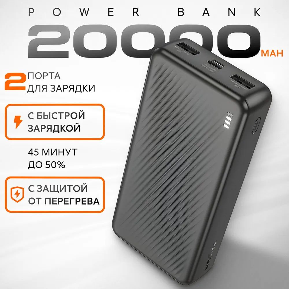 Внешний аккумулятор BOROFONE BJ55A — это надежный и мощный повербанк, который станет незаменимым помощником в любых условиях. С емкостью 20000 мАч (74 Втч) он обеспечивает длительную работу ваших девайсов, будь то телефон, планшет или другие гаджеты. Благодаря входам USB-C и microUSB с поддержкой 5В/2А, а также двум выходам USB с общим выходом 5В/2А, этот пауэрбанк для телефона 20000 отлично подходит для зарядки нескольких устройств одновременно.Светодиодный индикатор позволяет легко отслеживать уровень заряда повербанка. Изготовлен из прочных материалов (АБС+ПК) и оснащен литий-полимерным аккумулятором, что гарантирует долгий срок службы. Компактные размеры (139x68x35 мм) и вес 405 г делают его удобным для ношения с собой — идеальное решение для тех, кто ищет портативную зарядку для iphone или других гаджетов.Этот внешний аккумулятор 20000mah, поддерживает быструю зарядку, обеспечивая оперативное восстановление энергии ваших гаджетов. Он станет отличным выбором для путешествий, командировок и повседневного использования, будь то повер банк для айфона или любой другой телефон.Надежный и стильный повербанк 20000mah — это не только устройство для зарядки, но и ваш верный спутник в мире современных технологий.