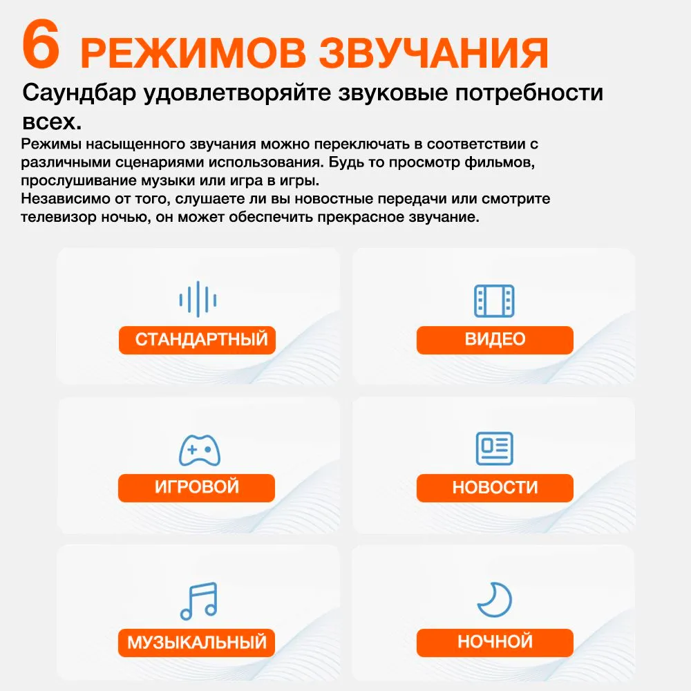 ? 6 звуковыми режимами для разных сценариев работы.