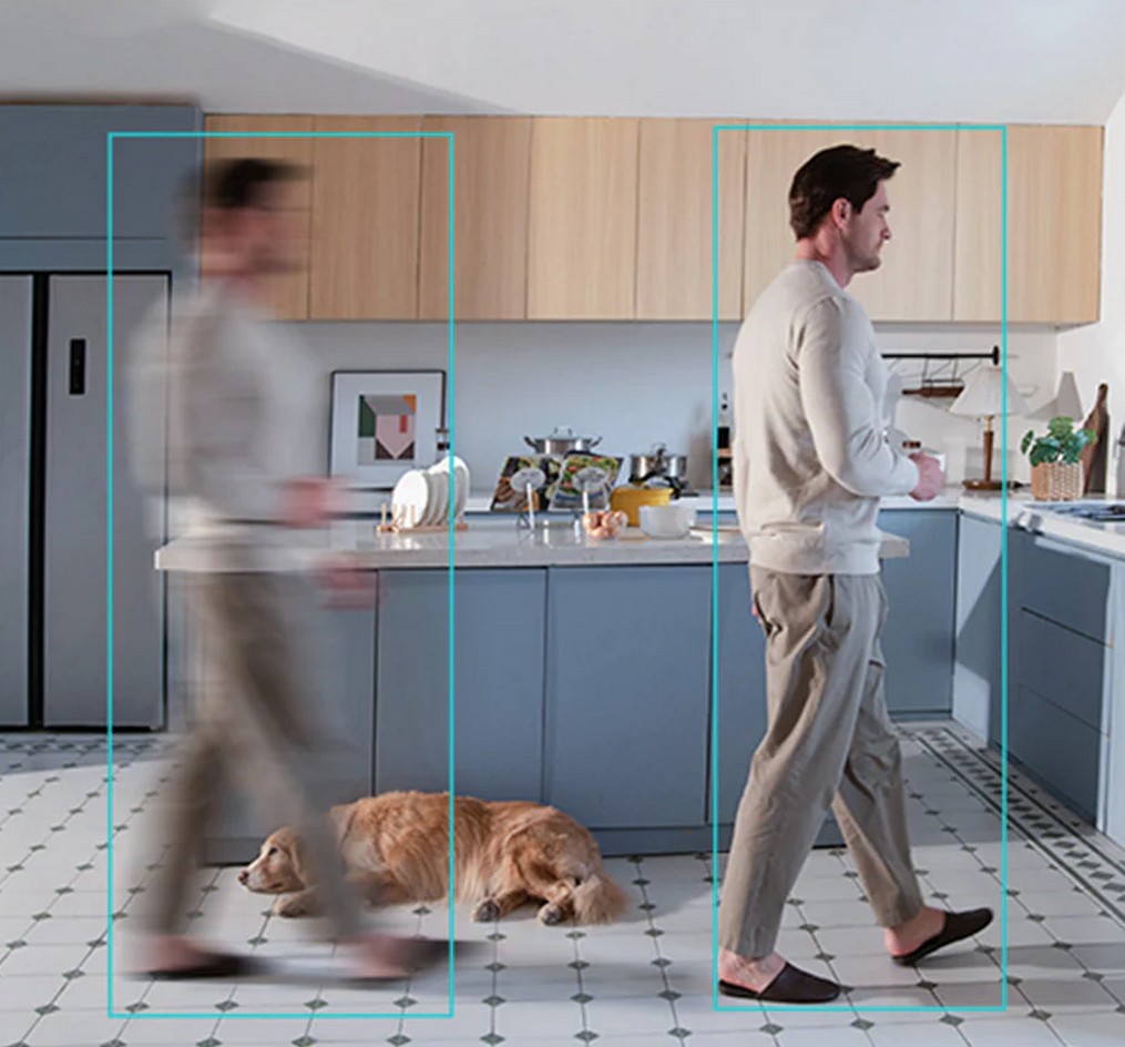 Верхний объектив автоматически отслеживает движение человека, как только оба объектива фиксируют движение, чтобы записать важные моменты.