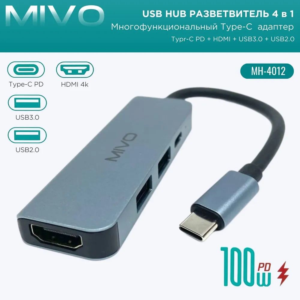 Разветвитель 4в1 для компьютера Mivo MH-4012 позволяет значительно расширить функциональные возможности ноутбука. Компактная модель оснащена двумя разъемами USB, разъемами Type-C и HDMI которые расположены на боковой стороне корпуса. Адаптер используется для подключения дополнительного оборудования, в том числе смартфонов, фотоаппаратов, накопителей или клавиатуры. Изделие изготовлено из высокопрочного пластика и алюминиевого сплава, устойчивого к механическому воздействию и надолго сохраняющего первоначальный вид. Разветвитель обеспечивает быструю и бесперебойную передачу данных. Для работы устройства не требуется дополнительное питание, а установка драйверов осуществляется автоматически.