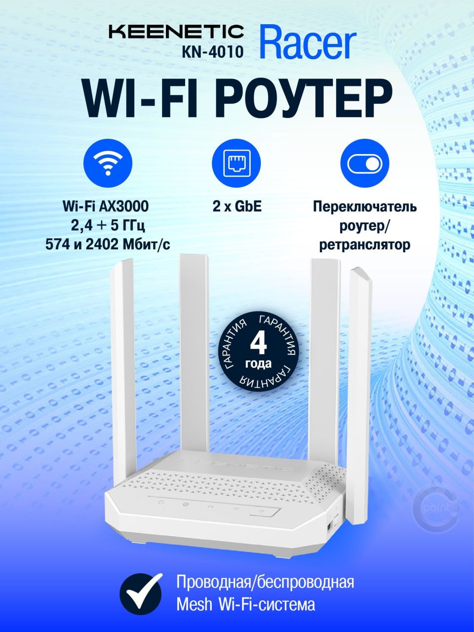 Mesh Wi-Fi-система Да, с переключателем на корпусе