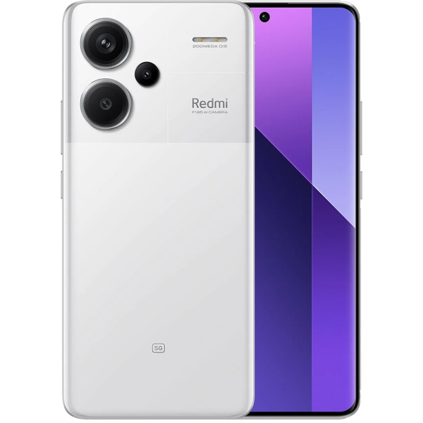 Xiaomi Redmi Note 13 Pro+ 5G в белом цвете — современный смартфон среднего сегмента, который сочетает стильный дизайн, защиту IP68 и производительную начинку. Корпус с плоскими боковыми гранями и загнутыми краями экрана выглядит лаконично и эргономично: устройство удобно держать в руке, а компактные габариты (74 × 161 × 8,9 мм) и вес 204,5 г делают его практичным для ежедневного использования. Защитное стекло Corning Gorilla Glass Victus обеспечивает устойчивость к царапинам, а степень защиты IP68 позволяет погружать смартфон в воду на глубину до 1,5 м на 30 минут.