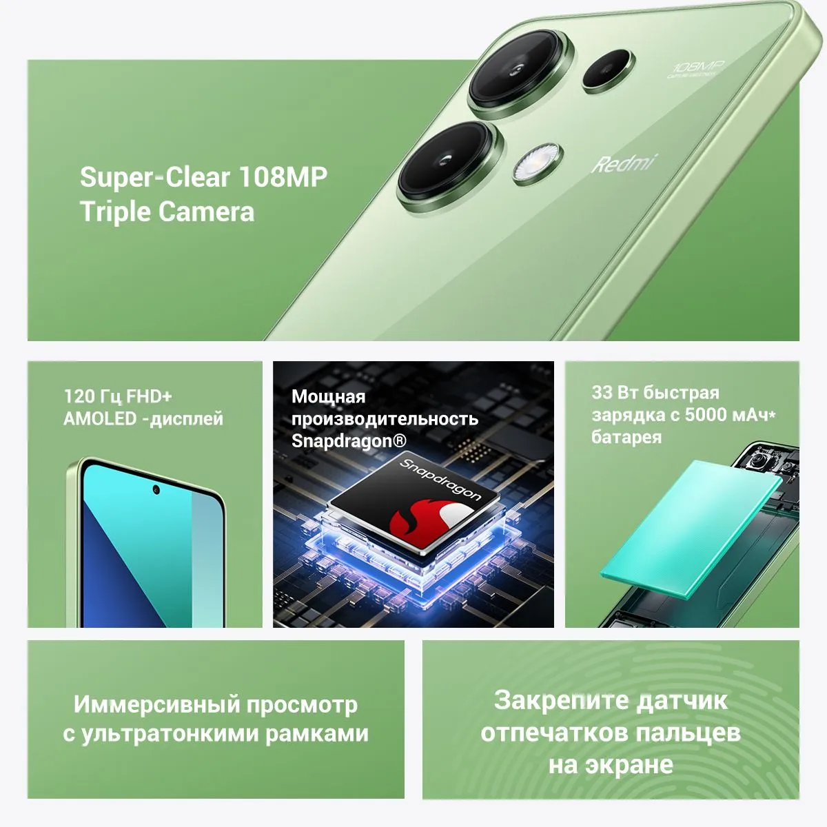 Redmi Note 13 / Адаптер / Кабель USB Type-C / Инструмент для извлечения SIM-карты / Защитный чехол / Руководство пользователя / Гарантийный талон