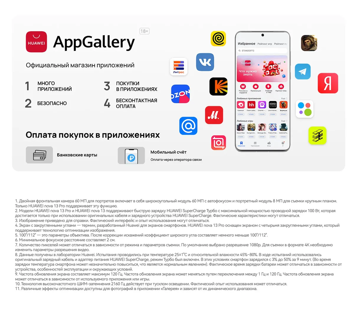 БрендHuaweiОбъем оперативной памяти (ГБ)12 ГБОбъем встроенной памяти (ГБ)512 ГБДиагональ экрана6.7 (дюйм)Разрешение экрана2412х1084 (пикселей)Основная камера (млн. пикс.)50 МпФронтальная камера (млн. пикс.)60 МпЕмкость аккумулятора (мА/ч)5000 мА*ч -
