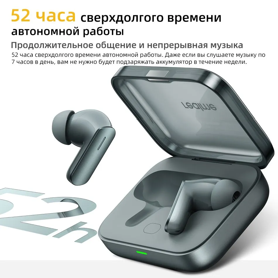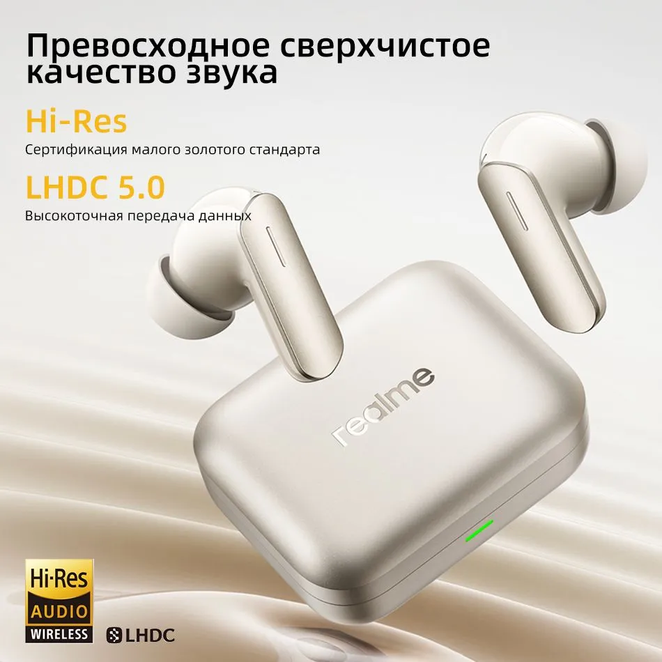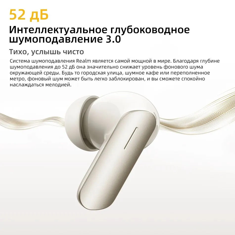 Глобальная версия наушников realme buds air 7 TWS Bluetooth 5.4 с активным шумоподавлением 52 дБ: Активное шумоподавление 52 дБ 3.0; 6-микрофонное шумоподавление при вызове