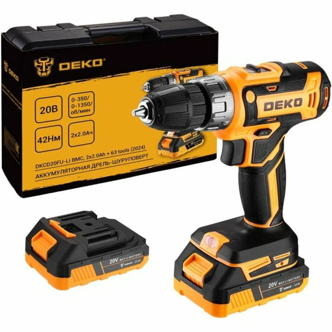 Дрель-шуруповерт аккумуляторная Deko DKCD20FU-Li в кейсе, 20В, 2x2.0 Ач + 63 предмета (063-4093) 4 200 ₽ 5 000 ₽ В корзину Купить в 1 клик Комментарии 0 Добавить комментарий Комментарии 0
