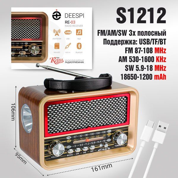 Радиоприемник deespi РЕТРО-стиль RE-03 BT/AM/FM/SW/USB/AUX/MicroSD