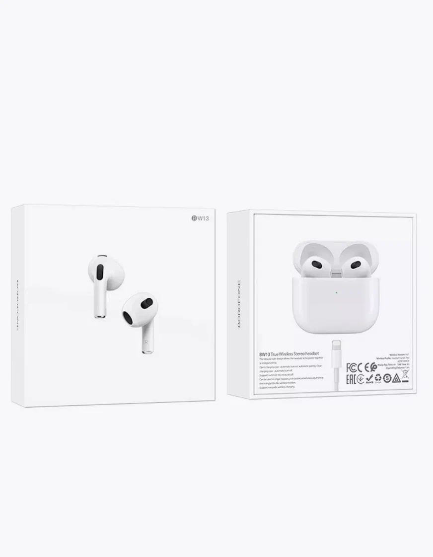 TWS Bluetooth гарнитура BOROFONE BW13 предназначена для прослушивания музыки по беспроводной связи Bluetooth, обеспечивая стабильное соединение и качественный звук. Наушники имеют компактный дизайн, который обеспечивает комфортное ношение в течение длительного времени. Основные характеристики беспроводных наушников Borofone BW13: Тип наушников: Вкладыши, Поддержка Bluetooth: Версия 5.1, Поддерживаемые форматы: Handsfree, A2DP, Headset, AVRCP, Интерфейс: Bluetooth, Lightning 8-pin, Разъем зарядки: Lightning 8-pin, Совместимость: iOS, Android, Рабочая дистанция: 10 метров, Время зарядки наушников: 1 час, Время воспроизведения музыки/разговора: До 4 часов (от аккумулятора в кейсе до 12 часов), Время зарядки блока питания: 1,5 часа, Время в режиме ожидания: До 120 часов, Стерео звук, Зарядный кейс с индикатором уровня заряда батареи, Вес блока: 38 грамм, Вес наушника: 3 грамма, Ёмкость: 30/300 мАч, Габариты: 53х48х24.5 мм. Функции: Сенсорное управление, Поддержка беспроводной зарядки Magsafe, Поддержка стандартной беспроводной зарядки Qi, Обнаружение в ухе, Переключение главный-подчиненный, Голосовой помощник Siri, Отсутствие всплывающего окна, Изменение имени сопряжения, Позиционирование.