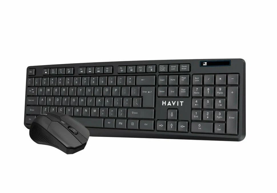 Беспроводная клавиатура и мышь Havit KB278GCM – USB-подключение – Черный цвет – Бесшумные клавиши – Оптическая мышь с разрешением 1600 DPI – Дальность работы до 10 метров – Эргономичный дизайн