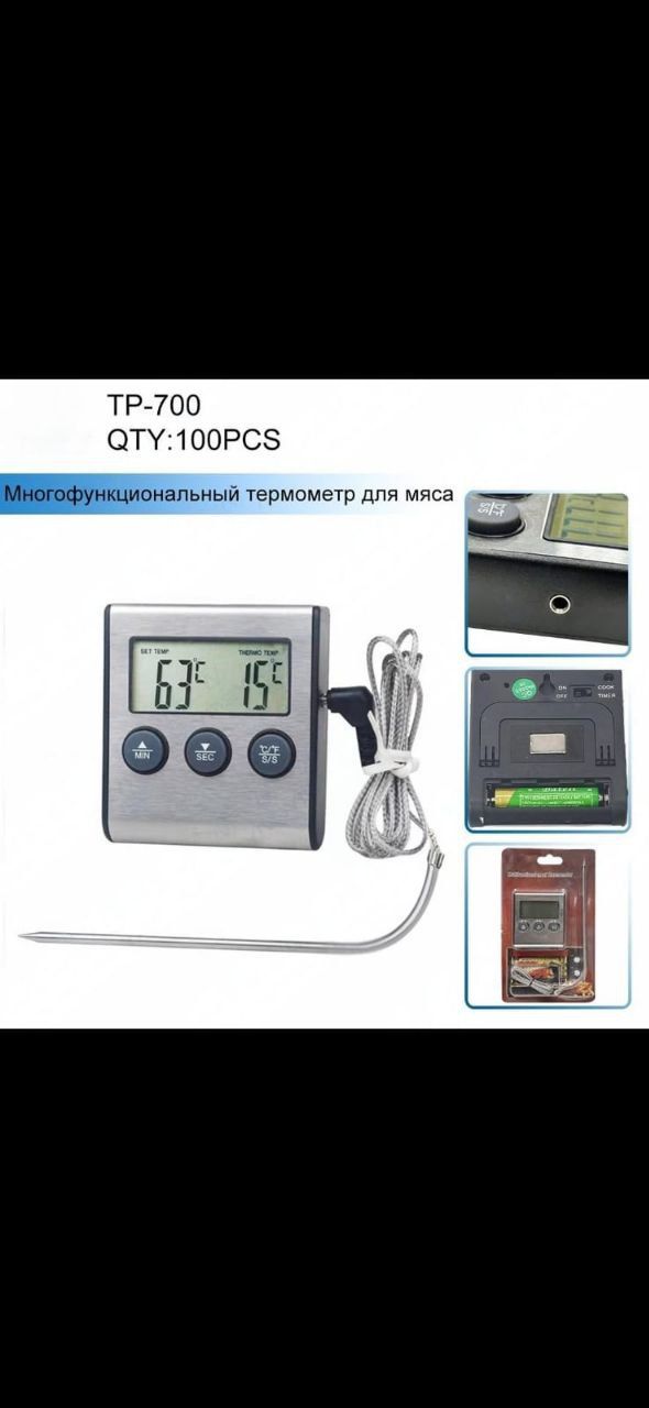 Термометр цифровой TP-700 с проводным термосенсором и звуковым оповещением. Позволяет установить звуковой сигнал при достижении нужной температуры.